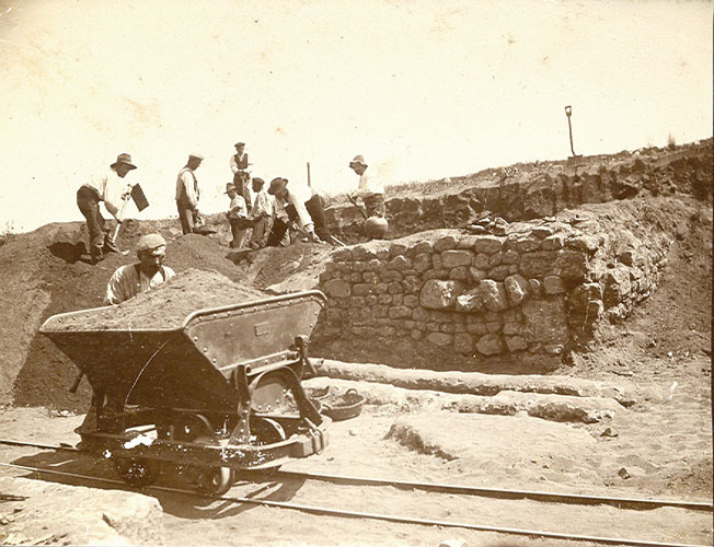 Fouilles de la zone des temples de la néapolis d’Empúries. Entre 1907 et 1908. Auteur inconnu.