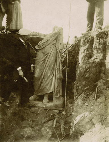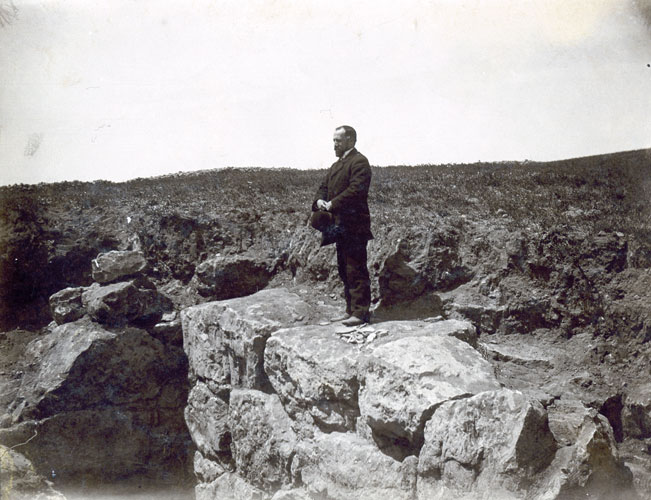 Emili Gandia pendant les fouilles de la partie inférieure de la sculpture d’Asclepi (Empúries). Le 5 novembre 1909.